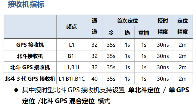 ●<30ns硬件同步精度(使用北斗/GPS接收機,典型,RMS);
